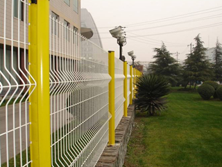 小區圍墻護欄常用桃型柱折彎型護欄網,網片三道折彎或兩道折彎、與桃型立柱組合造就了此種產品獨有的美觀效果,而且表面采用多種顏色的浸塑處理,如黃色、草綠色、墨綠色、紅色、白色、藍色,立柱與網片不同顏色的搭配更是令人賞心悅目,高端大氣。同時此種產品多采用帶底盤立柱,安裝只需打好膨脹螺栓,非常的快捷。為滿足不同用戶的要求、其規格多種多樣: