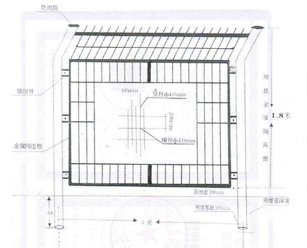6.金屬護欄網網片施工方法:根據要求按照基礎及立柱施工,而后進行網片安裝施工。施工工程根據直線原則,同時又要對不平整地形,盡量整成直線平坡或斜披,使結構上不要有太大起伏。一下是框架護欄網安裝圖紙說明: